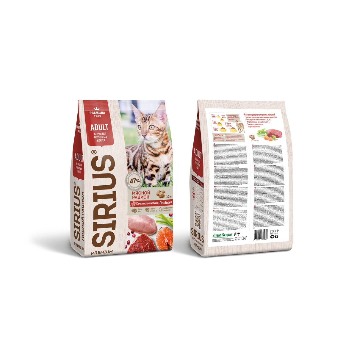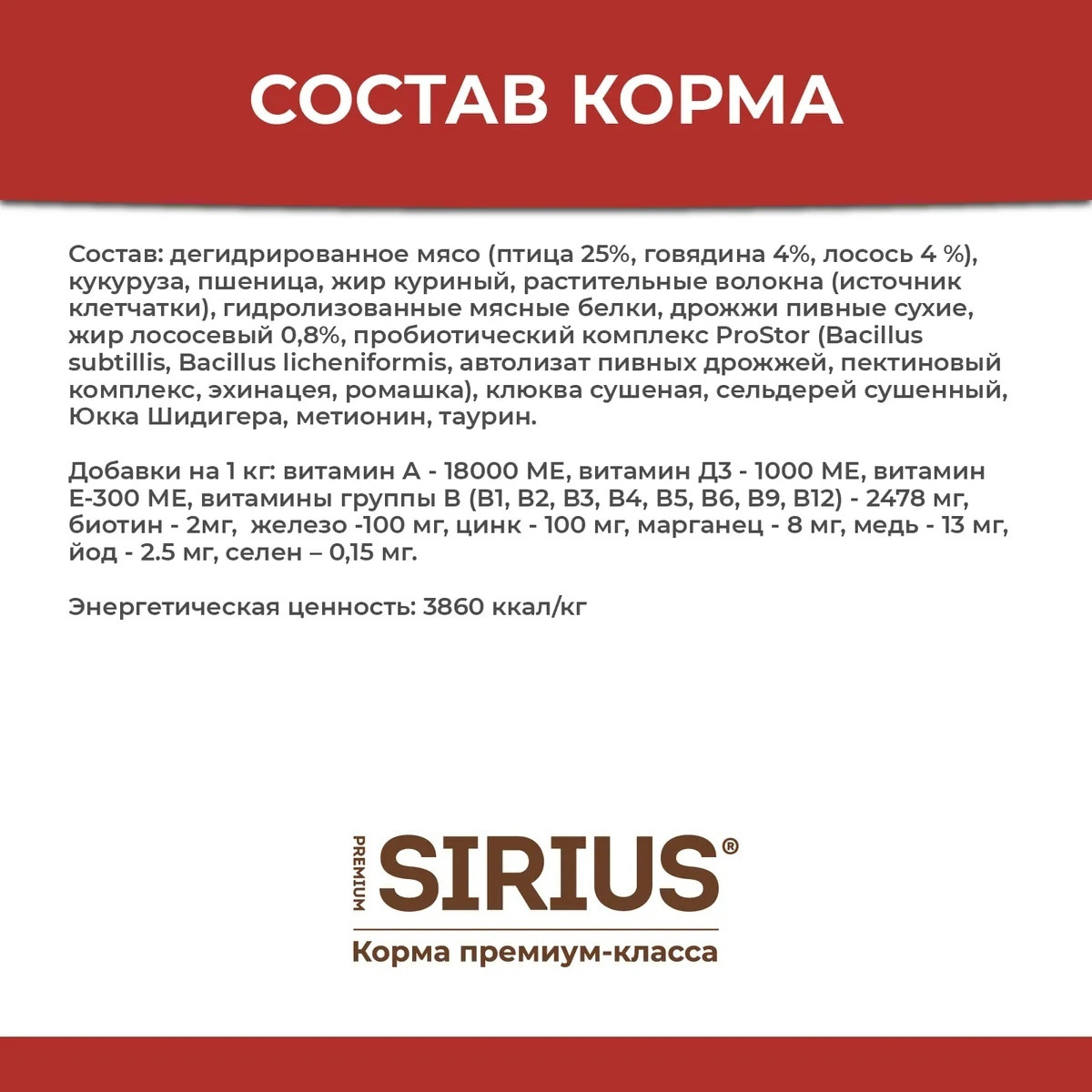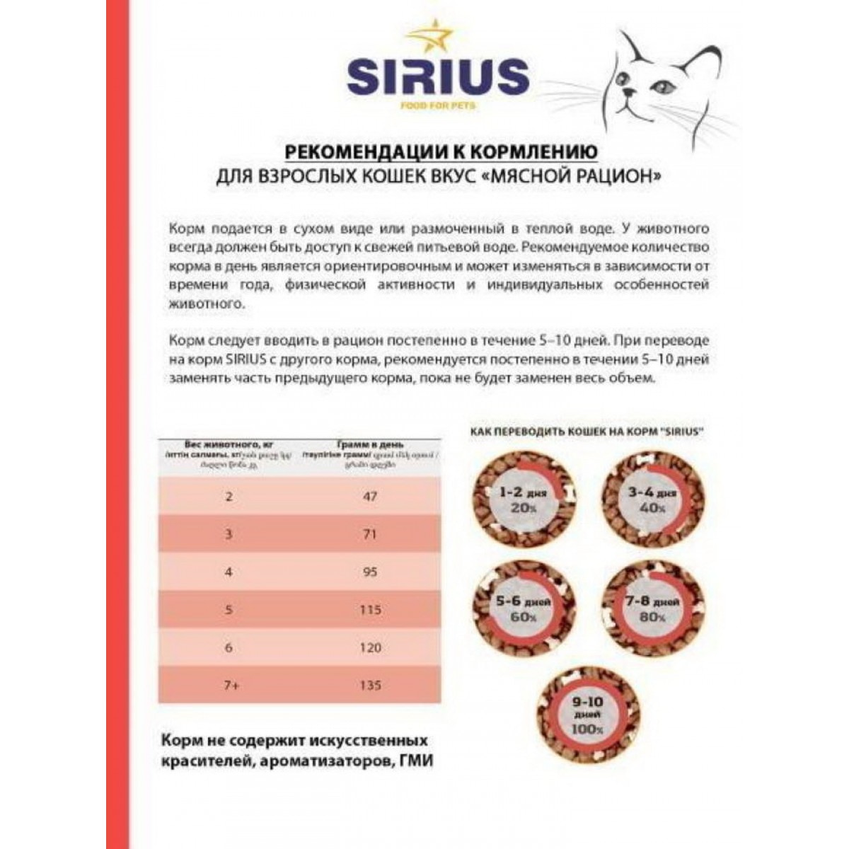 МЯСНОЙ РАЦИОН Сухой корм премиум класса SIRIUS для взрослых кошекИнгредиенты SIRIUS для кошек мясной рацион