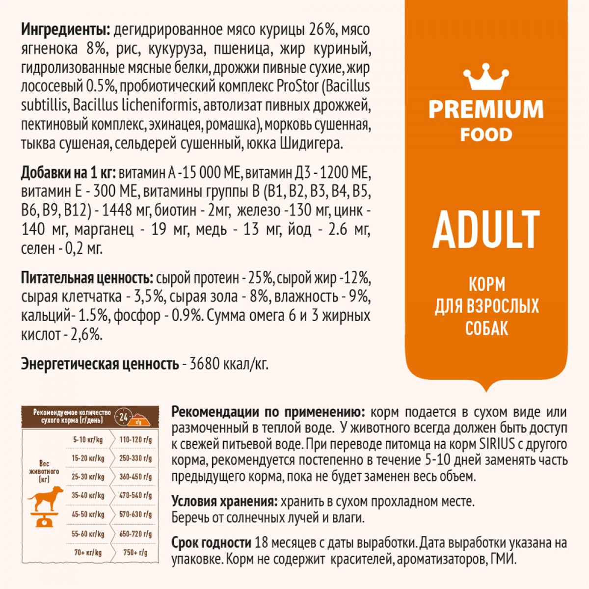 ЯГНЕНОК С РИСОМ Сухой корм премиум класса SIRIUS для взрослых собак