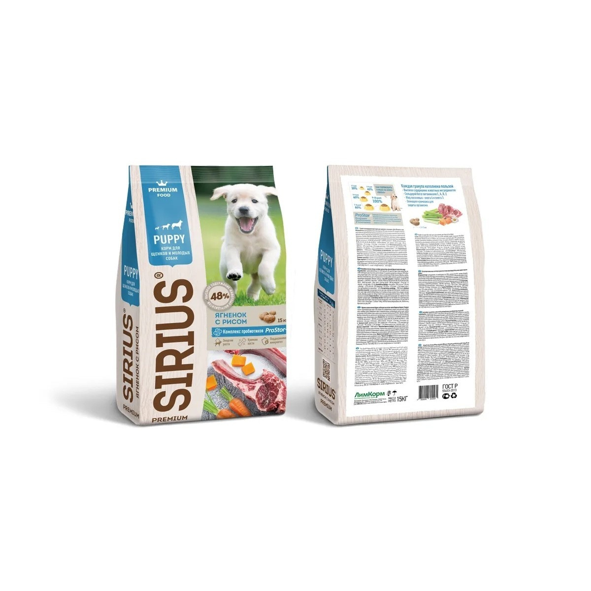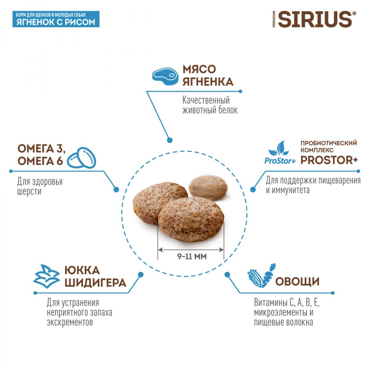 ЯГНЕНОК С РИСОМ Сухой корм премиум класса SIRIUS для щенков и молодых собакИнгредиенты корма SIRIUS для щенков ягненок с рисом