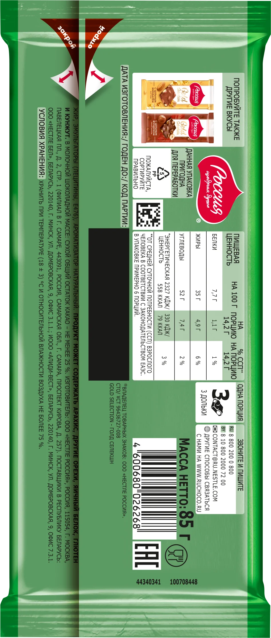 «Россия» - щедрая душа!® Gold Selection. Молочный шоколад с фундуком. 85г