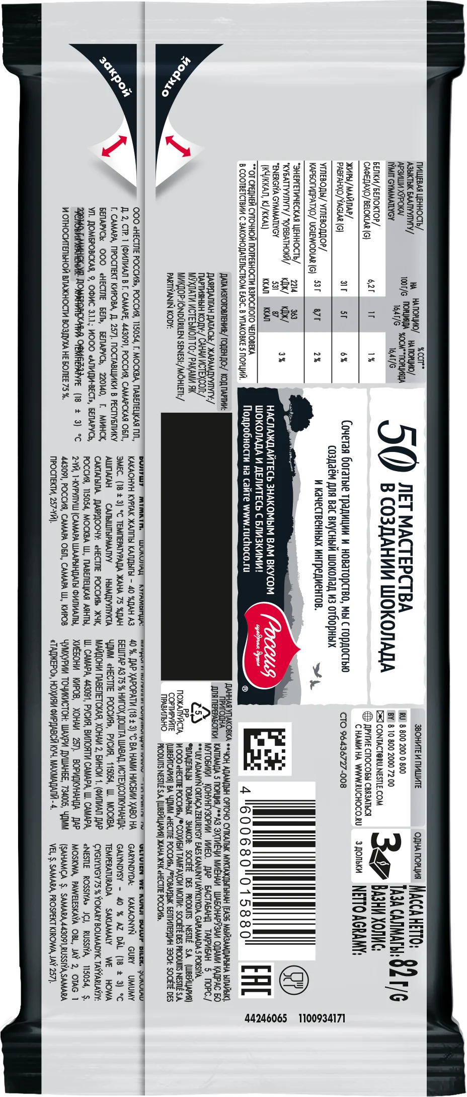 «Россия» - щедрая душа!® Путешествие Темный шоколад, 82г